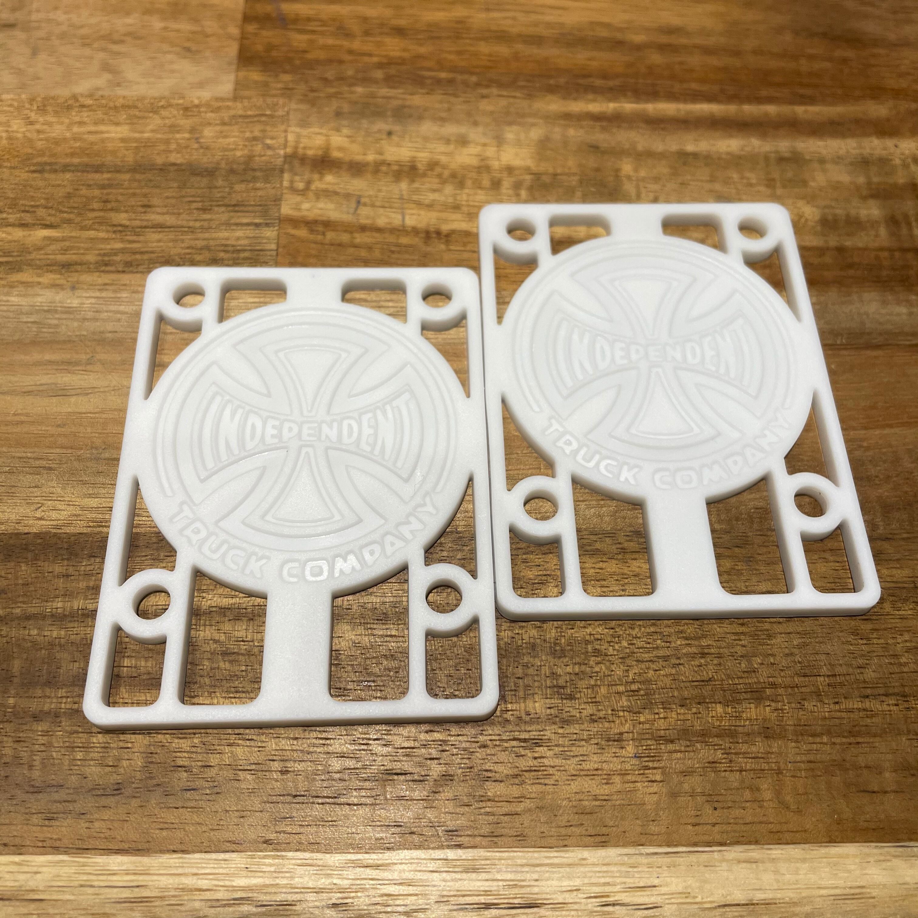 ライザーパッドはウィールバイト(ウィールがデッキに当たってブレーキがかかる現象)を防いだりlowのトラックを高くするためのアイテム。