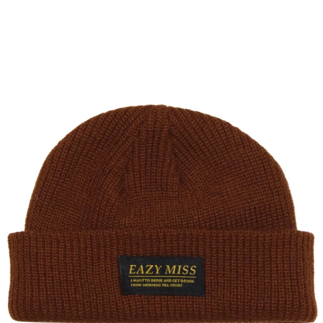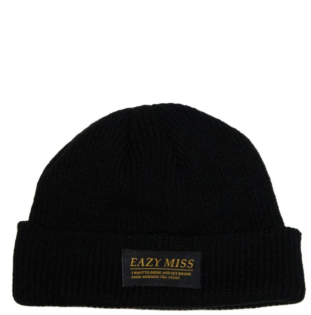 頭囲に関しての心配は不要です。伸縮性が非常に優れているため、頭が大きい方でも快適に着用可能。ショートニット帽は、通常のものよりも分厚く丈夫に仕上げられており、頭にぴったりとフィット。トップ部分が余ることもなく、完成されたシルエットが特徴です。さらに、帽子のロール部分には"EAZYMISS"の織ネームが縫い付けられており、黒ベースの金色の文字が大人の雰囲気を醸し出し、一層の高級感を感じさせます。