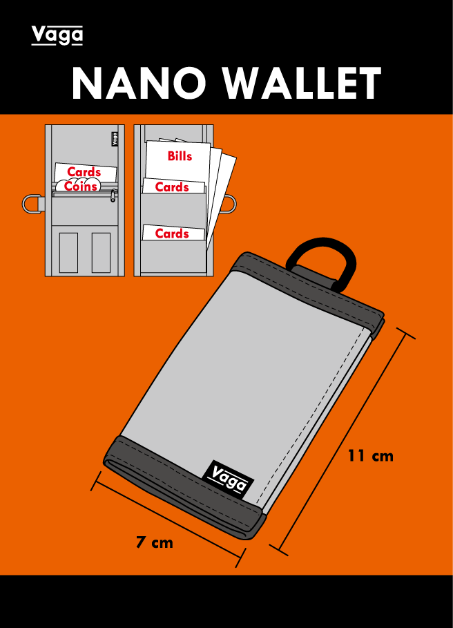 幾度とない試作を経て、ポケットに入れていても身体の動きを妨げない超小型サイズでありながら、カード、紙幣、コインを収納することができる”Nano Wallet”が作り出されました。